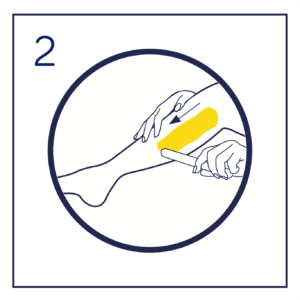 After testing the temperature on your wrist, use the spatula supplied to apply a thin layer wax in the direction of hair growth. Next apply the backing strip and rub firmly several times with a smoothing action.
